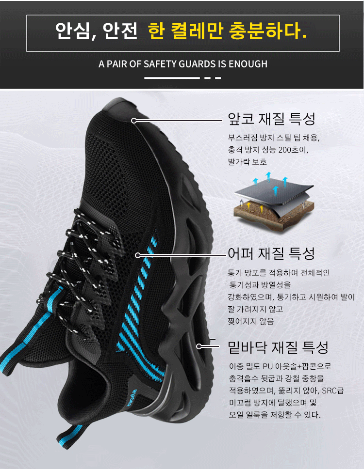 부수기와 뚫기 방지 비직 남성 신발